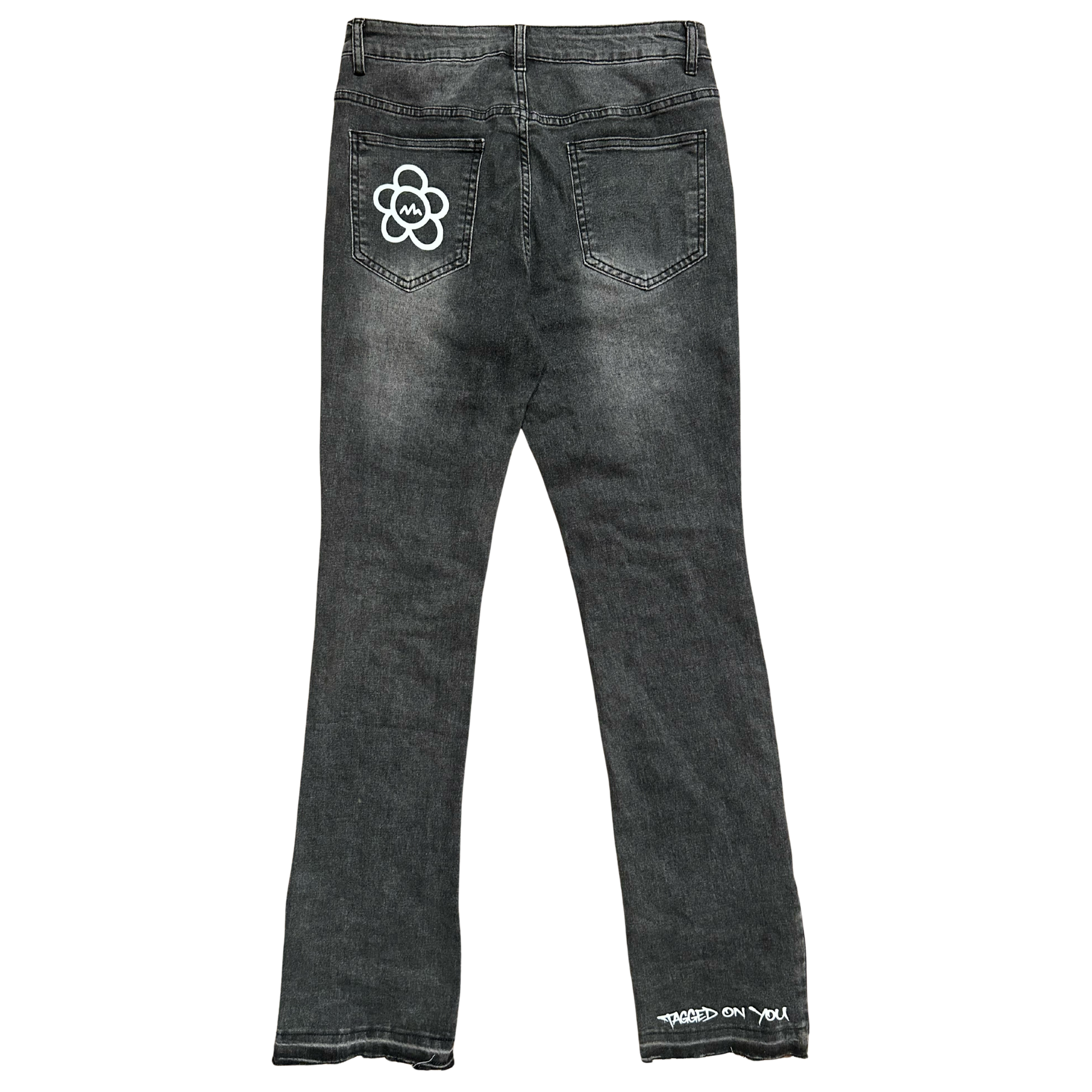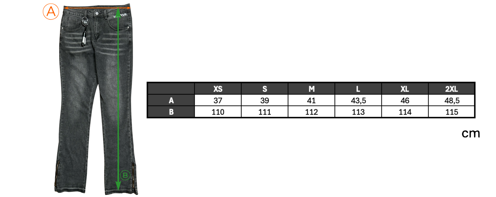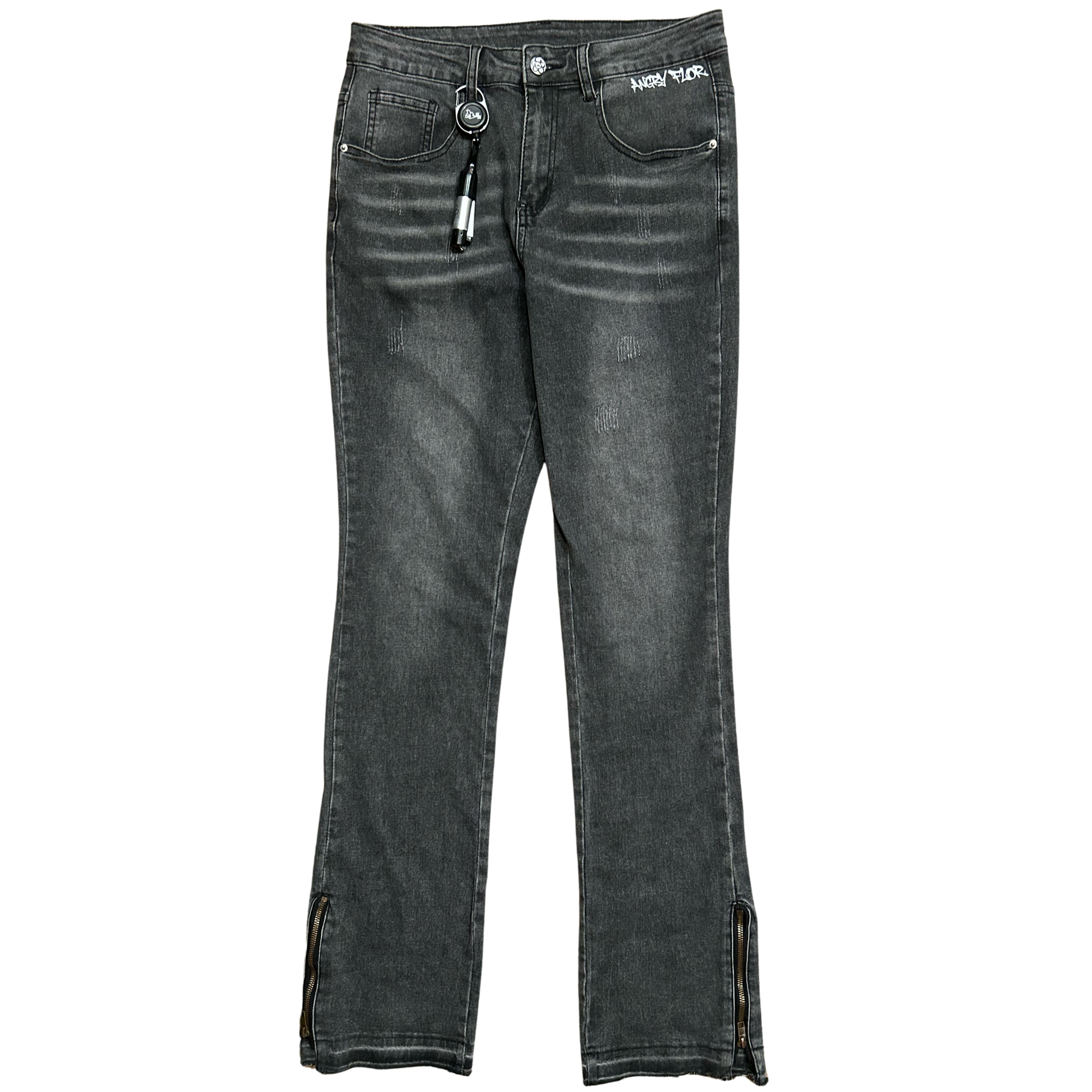 DROP 05 – Pantalones vaqueros de mezclilla gris con cremalleras en los tobillos y fit largo casual. Incluye el accesorio.