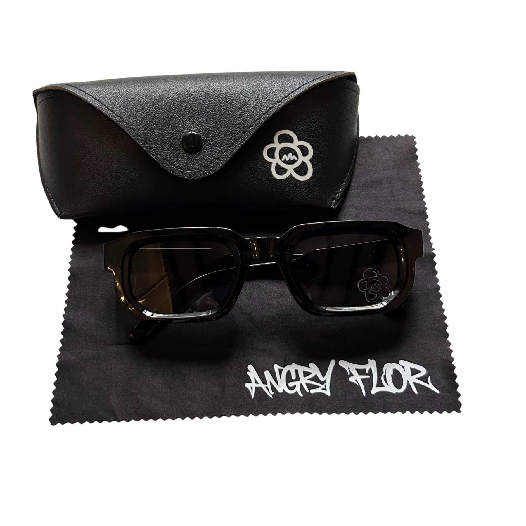 DROP 07 - Gafas de diseño en color negro con estética limpia y atemporal.El pack incluye las gafas Angry Flor, funda protectora y trapo de limpieza.