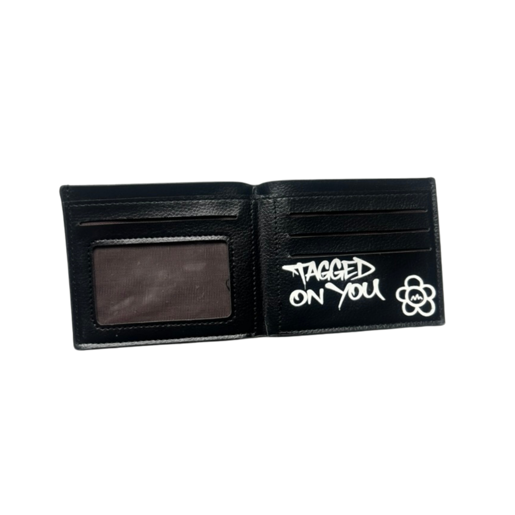 DROP 07 - Cartera de cuero negro con acabado premium y logos en blanco de alto contraste. Diseñada para el uso diario, combina estética street con funcionalidad real.